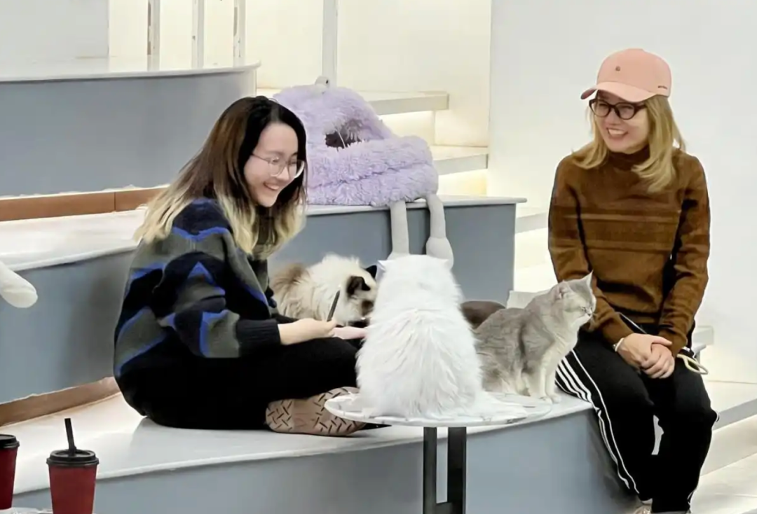 2026年1月20日,在北京五棵松万达广场暖宠家店铺里,消费者正与宠物猫互动。新华网 韩攀 摄
