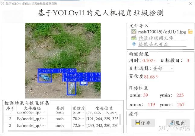 data.yaml 文件。train.py 脚本。runs/train/drone_garbage_v11n/weights/best.pt。main_window.py 中的模型路径 self.model = YOLO('...') 指向您训练好的 best.pt 文件。main_window.py 即可启动图形界面。