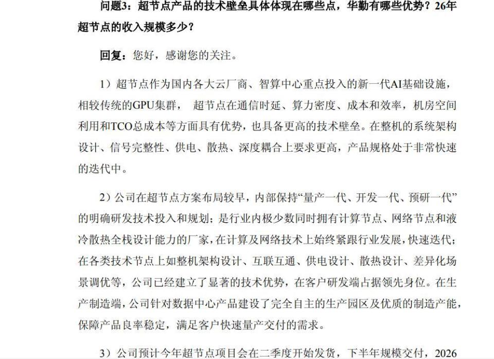 根据研报预测,预计超节点项目将于2026年二季度开始发货,下半年规模交付,全年营收贡献有望超过百亿规模,成为公司未来业绩增长的核心爆发点。
