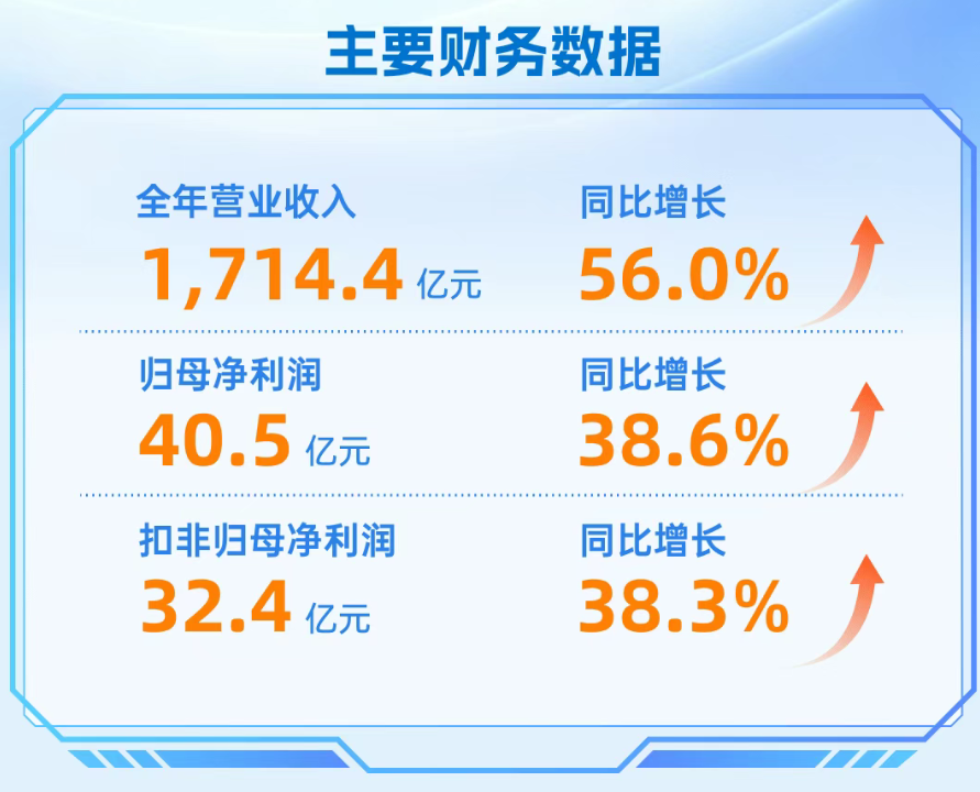2025全年,华勤技术实现营业收入1714.37亿元,同比增长56.02%;数据中心业务营收突破400亿元,接近翻倍增长,其中AI服务器占比超过70%,交换机业务营收突破25亿元实现倍数级增长。