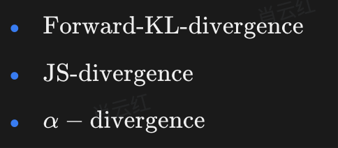 具体而言,不再沿用传统的reverse-KL,而是引入更具mass-covering性质的 ,例如: