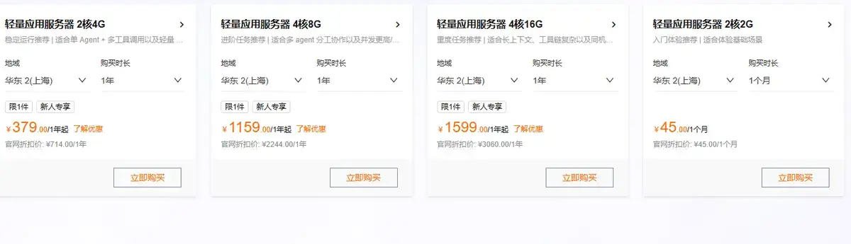 | 轻量应用服务器(抢购) | 价格极致(38元/年起),带宽高(200M),开箱即用。 | 个人博客、官网、学习测试、轻量级应用。 | 个人开发者、学生、初创企业、成本敏感型用户。 |