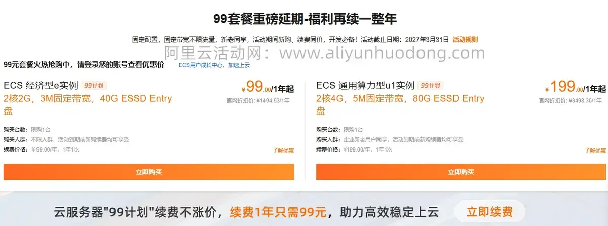 1. 经济型e实例(ecs.e-c1m1.large):这款实例主打极致性价比,配置为2核2G内存,3M带宽,40G ESSD Entry云盘,活动特惠价低至99元1年。它是轻量级应用上云、企业官网、开发测试环境的绝佳选择。其续费规则通常遵循官网标准价,因此首年优惠力度极大,非常适合预算敏感型的初创团队或个人。购买资格上,该特惠价主要面向符合条件的新老用户。
