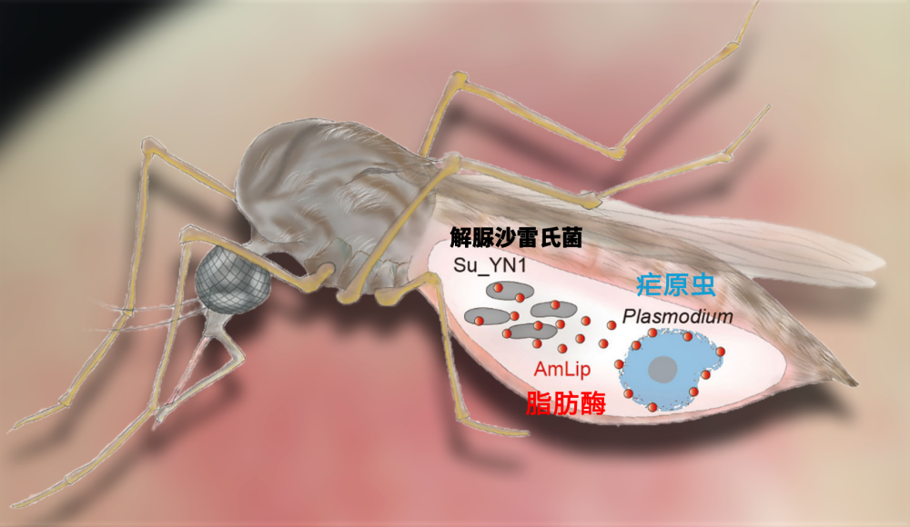 于是我们扩大检索范围,果然从蚊子的核心菌(在不同地域蚊虫肠道中普遍存在的细菌)中,锁定了一株特殊的共生菌——解脲沙雷氏菌Su_YN1,它产生的代谢物几乎可以把疟原虫全部杀死。