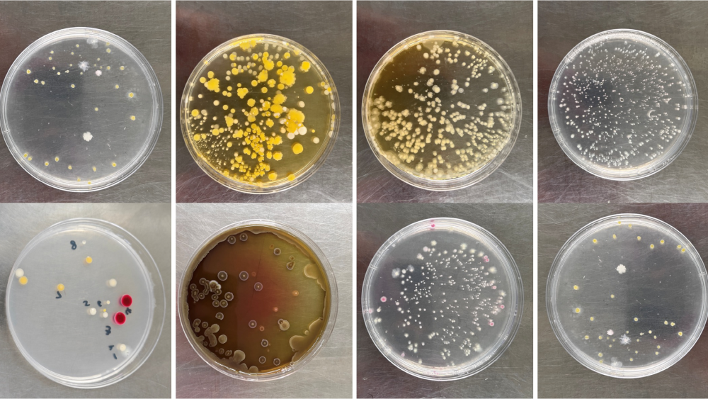 王四宝:接下来我们需要把蚊子肠道研磨、稀释,再涂布到培养皿平板上培养。通常一两天后,就会长出颜色各异、形态不同的细菌菌落。