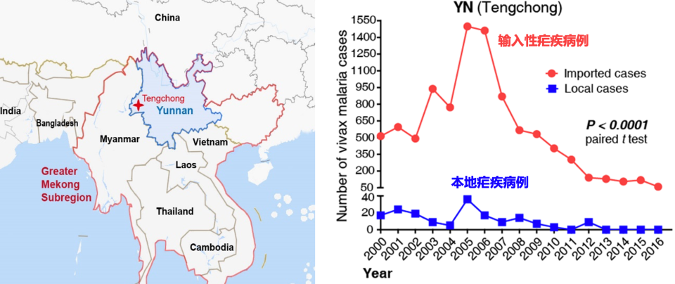王四宝:还真有。我们系统分析了2000年-2010年我国的疟疾流行病学数据后,发现云南腾冲跟缅甸交界,有不少输入性疟疾病例,但本地新发病例却非常少,很多年份都是零。